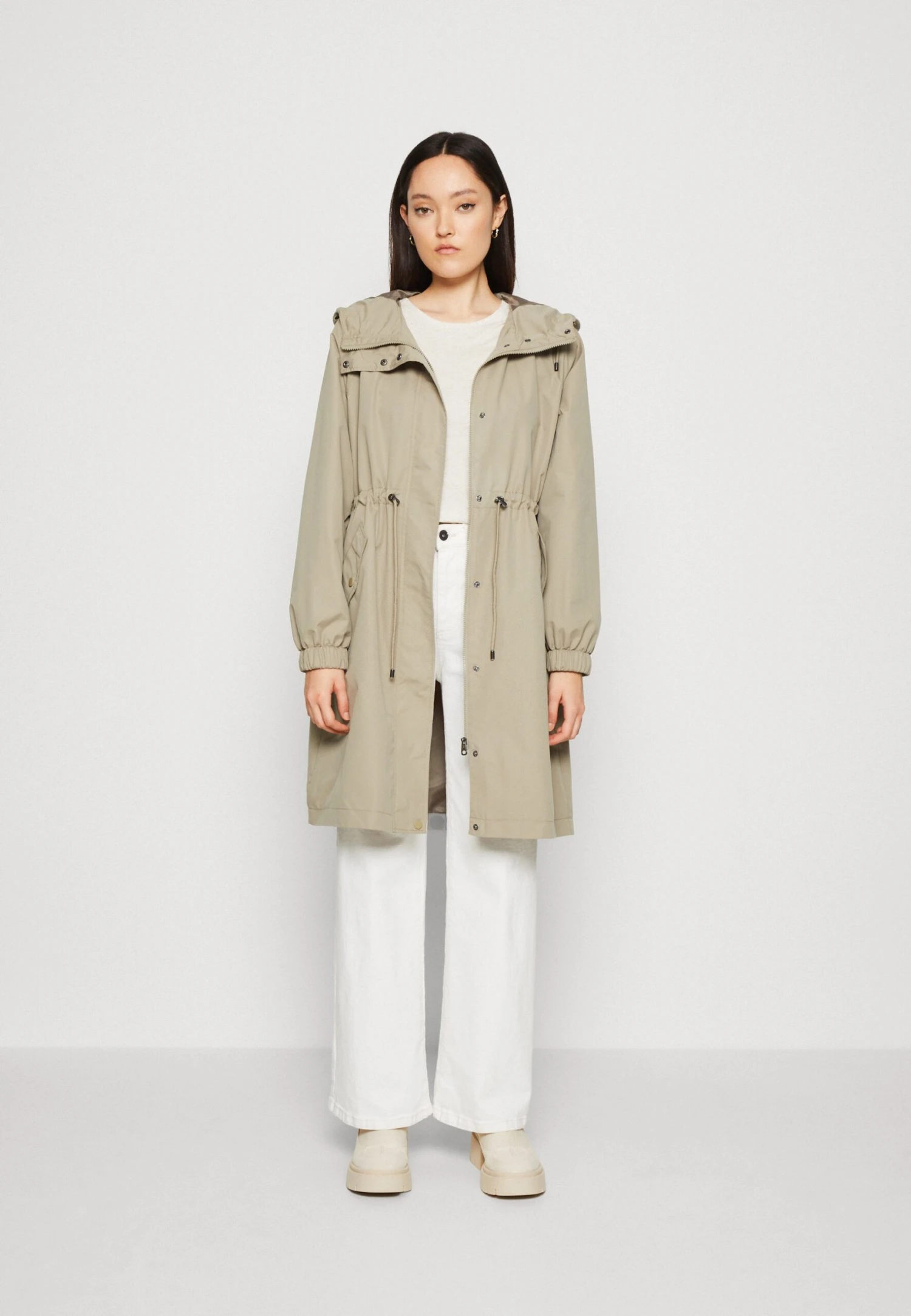 | Details | Verdekte rits, decoratieve knopen |